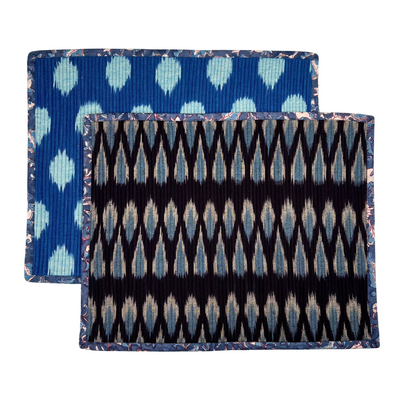 The Breakfast Ikat Placemat (Pair) - Dark Blue & Bright Blue