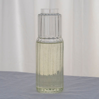 The sleek, architectural silhouette of the PILLAR carafe exudes a refined yet understated presence. Thoughtfully designed, the set includes a PILLAR tumbler that serves as a lid, making it a versatile addition to a nightstand or dining table.