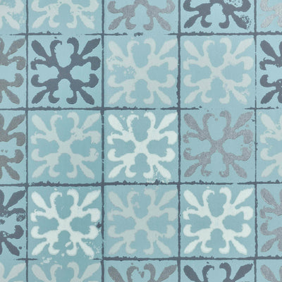 A trompe l’oeil tile print with a bistro feel, Fleur de Lys Tile is traditionally printed using this signature surface print technique and is available in Canteen Blue or Vintage Grey.