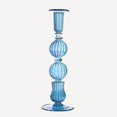 A beautiful handblown glass candle holder designed by Issy and made by Egyptian artisans in Cairo. Egypt has a rich history of glassblowing dating back well over 3000 years and the artisans today continue the craft that has been passed down the generations.