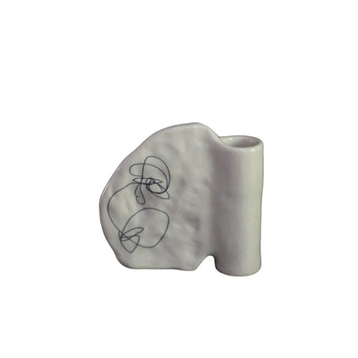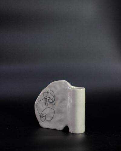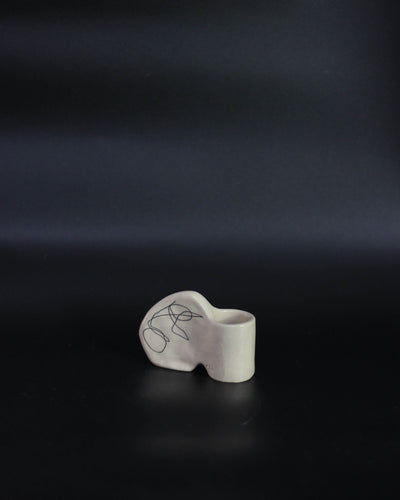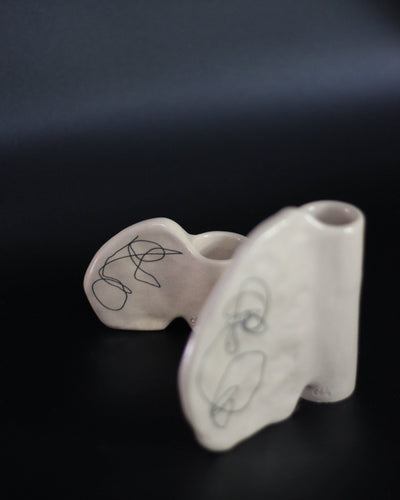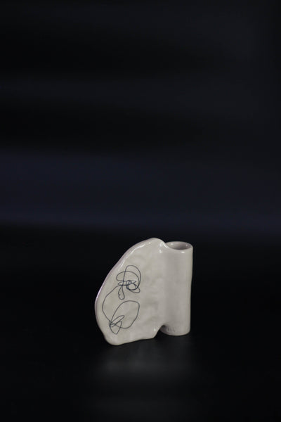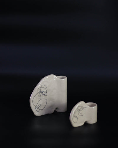 Stoneware candlestick, with a spontaneous black drawing, traced by hand then printed on the piece. Each candlestick is unique. Sold individually.