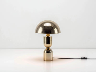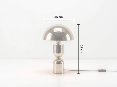 This season the funghi trend plays to 1970's interiors revival. Developed in collaboration with Swoon as part of their sideboard collection, the mushroom table lamp is a statement piece that will give you serious design credentials. Perfect for styling a sideboard or above a fireplace. Brass is a natural finish to this contemporary design. A popular neutral in modern homes, this solid block tone oozes class and sophistication.  Please note EU customers will need to have the wiring adapted.height: 39cm width: 25cm length: 25cm weight: 2.2kg