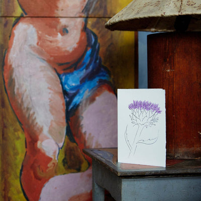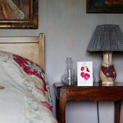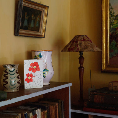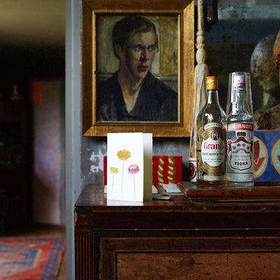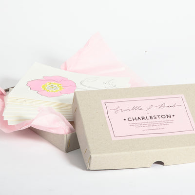 A boxed set of 10 letterpress-printed & individually hand-painted notecards & matching envelopes created by Scribble & Daub in collaboration with Charleston of flowers drawn from the Bloomsbury group's favourites, found within the walled gardens at Charleston Farmhouse. The boxed set is presented in a tissue lined, grey archival box with brass wire-stitching, finished with a Charleston pink, hand-drawn label and includes one card each of: