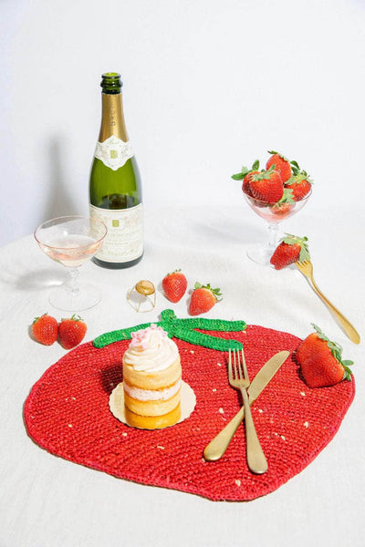 Strawberry raffia placemat, woven tabletop