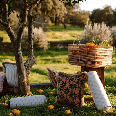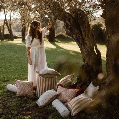 Give your interior, terrace or balcony a boost. Discover our versatile outdoor cushions, perfect for both outdoor lounging and indoor comfort. This cushion cover, crafted from 100% polypropylene, features a custom-woven fabric for a soft, luxurious feel. Produced energy-efficiently without harmful coatings, these cushions endure sun and light rain, thanks to their water-absorbing yet quick-drying nature. Resistant to unpleasant smells, discoloration, wrinkles, and dirt, they maintain color and allure. You can leave the cushions out in the rain, but if you like your cushions to stay dry, we do recommend bringing them inside. The filling is sturdier than an indoor filling, but is still plenty soft to be used indoors as well.