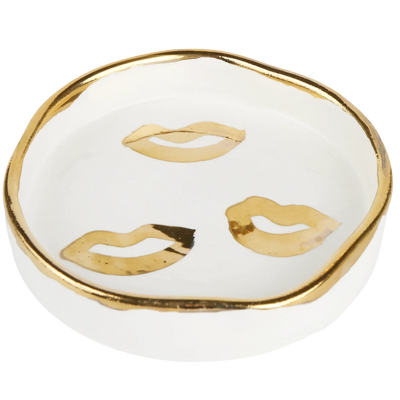 This unique object is moulded with love and hand-painted in kiss design with pure gold, in Greece. More than just a trinket tray, it's a unique way to infuse contemporary style into any space.