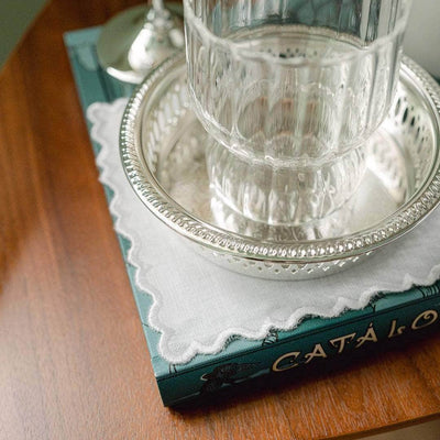 This napkin is the perfect complement to appetizers and amuse-bouche, bringing a unique elegance to social moments. In addition to protecting surfaces from condensation from glasses, it can also be used as a sophisticated napkin to enjoy small delicacies.