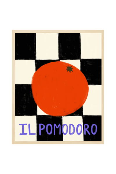 Add a touch of retro charm to your space with this vibrant pop art print featuring a tomato on a black and white check background. Measuring 8.5 x 11 inches, this archival art print is perfect for framing and displaying in your kitchen or dining area.
