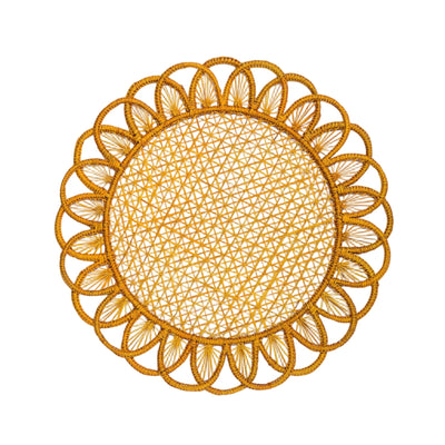 Round placemat Handwoven in Iraca palm, with a scalloped edge.