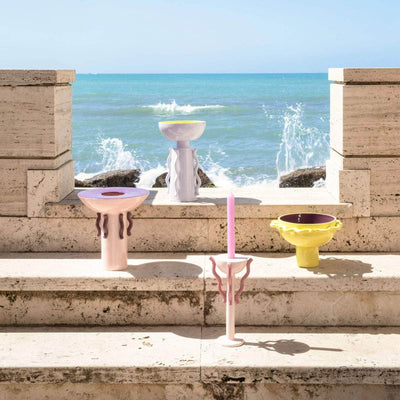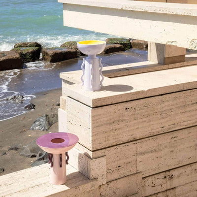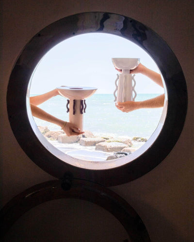 Medusa has a floating soul, and on her perforated hat, the sunlight shimmers through a veil of color. Hers is an elegant and timeless presence.