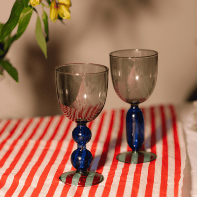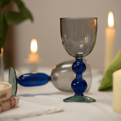 Glassware that stands out. Glassware, you can’t wait to show off. Glasses that make a statement. With their unique stem shape, in rich shades of blue and green, or delicate pastel colours they're perfect for every hosting moment.