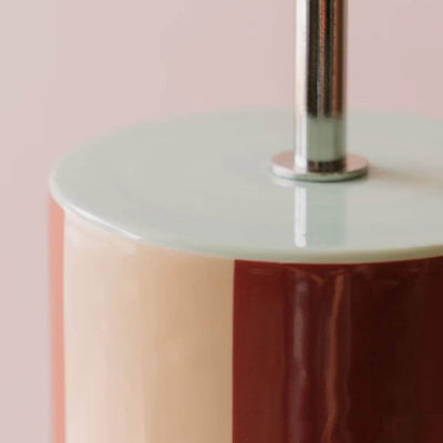 Base : Earthenware. oxblood + buttercream striped pattern & mint top. Shade : Warm Cognac Brown Twill Ultra-limited edition.  Designed by mattina moderna.