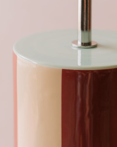 Base : Earthenware. oxblood + buttercream striped pattern & mint top.