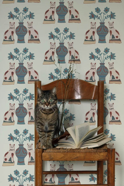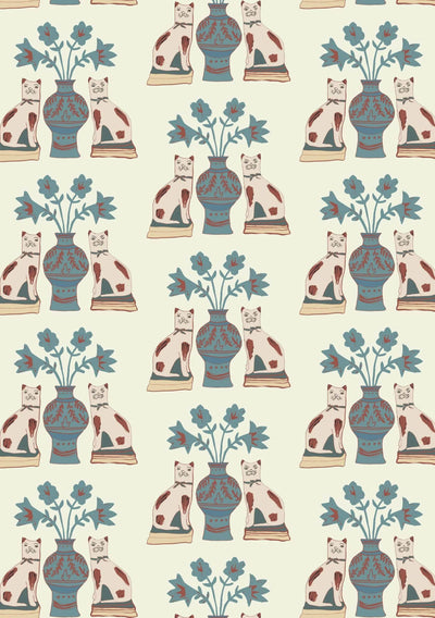 Step into a fanciful journey with our Pair of Cats wallpaper – a delightful synthesis of Victorian grandeur and the playful spirit of our feline friends. Born from the nostalgia of Staffordshire dog figurines from my childhood, this design takes a charming twist to pay tribute to the enduring history of feline companions and the captivating world of Staffordshire flatback pottery.