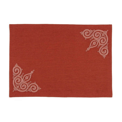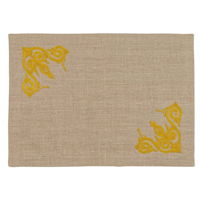 Accentuated with arabesque designs, the Palace placemat is embroidered entirely by hand using a Mamluk cording technique. Lustrous and opulent, it dates back to Mamluk's artwork both aesthetically and through technique. A glamorous addition to your tableware collection.