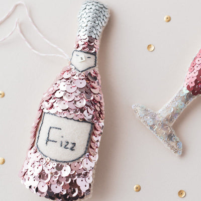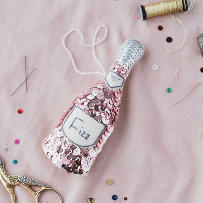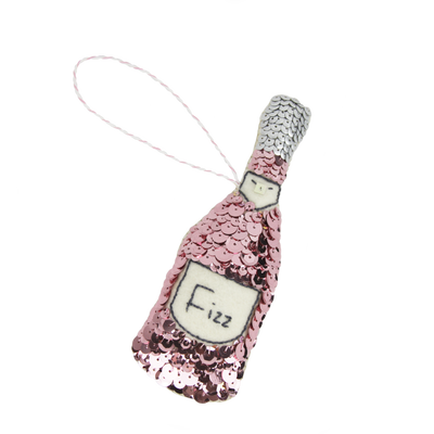 Hand stitched onto wool felt and embroidered with a mix of pink toned sequins this is a fun decoration for your home or as a gift for a rosé champagne lover!