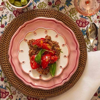 A lovely scalloped trim set of four pink ceramic plates: perfect for everyday use.