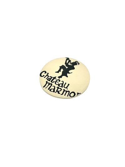 The Chateau Marmont Coaster from L&Clay Ceramics features black underglaze text on a cream base, featuring the famous Chateau Marmont logo.