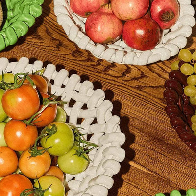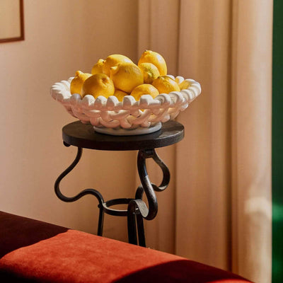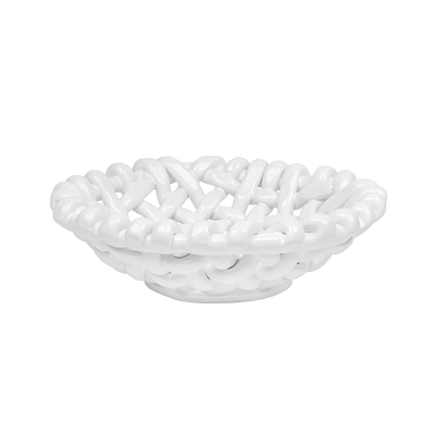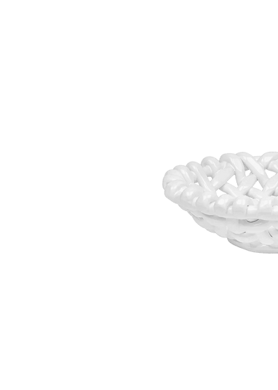 Handwoven white ceramic basketweave bowl. Designed to display, these glazed bowls are the ultimate sideboard show-off.