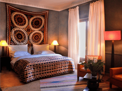 Attracting a Boho crowd of artists and writers, Jnane Tamsna is designed in a luxe ethnic style and rooms have elegant garden and roof terrace access. The Suites and Villas come with fireplaces, verandas and modern Moroccan-style decor.